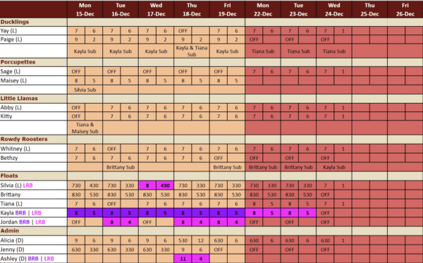 - We will be CLOSED December 25th- January 2nd for Christmas break🎄Staff who have been with the Barn for more than 90 days will receive 50% of their salary for this closure.
